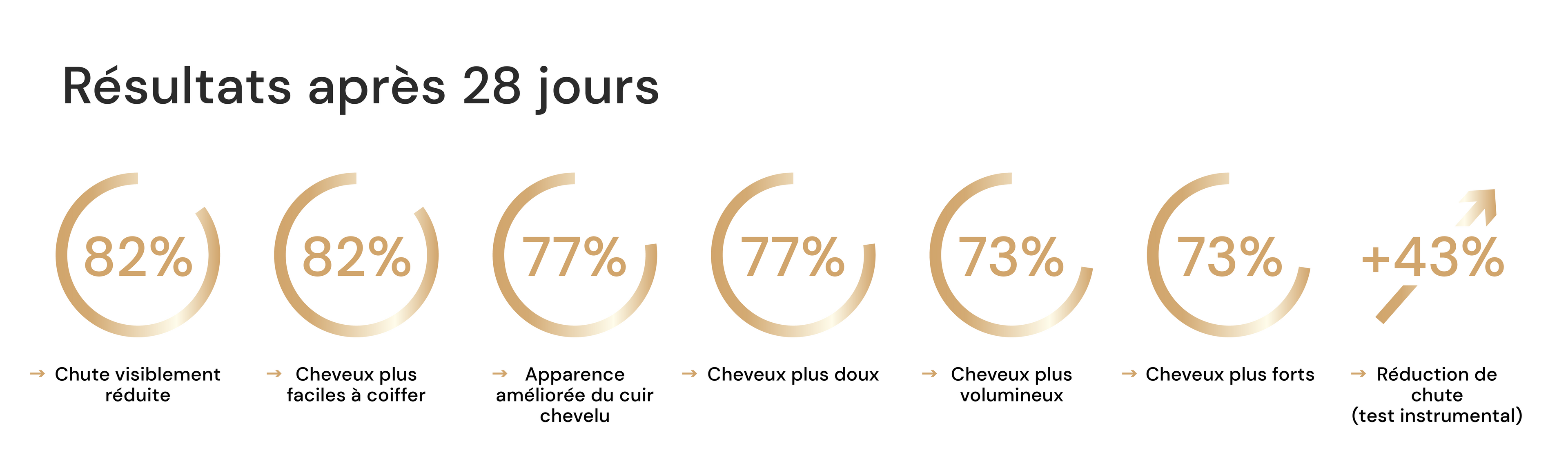 Cliniquement prouvé : réduit la chute jusqu’à 70 % et augmente la densité capillaire jusqu’à 11 % en 56 jours.