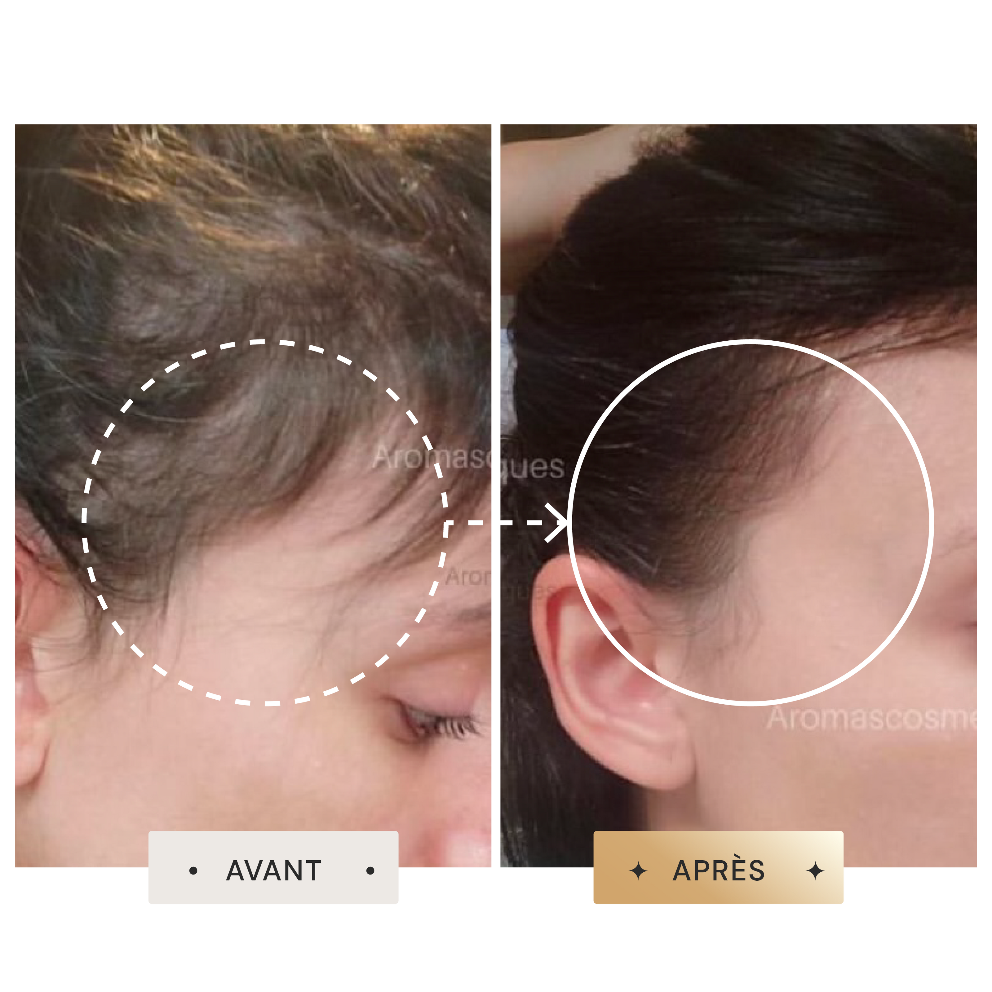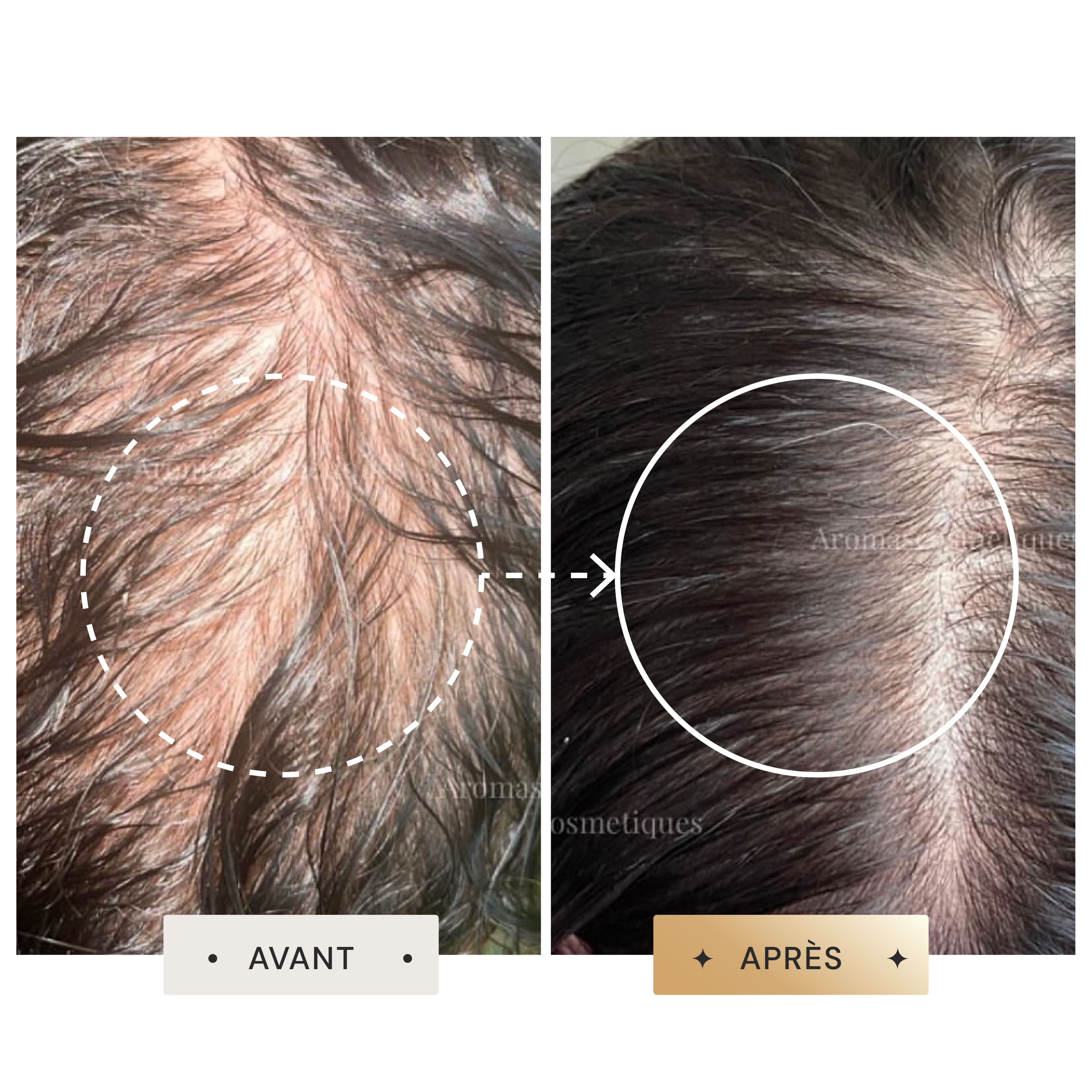 Mes cheveux paraissent plus denses et mes amis me demandent quelle est ma routine ? On voit bien la différence de avant après et je suis très satisfaite.